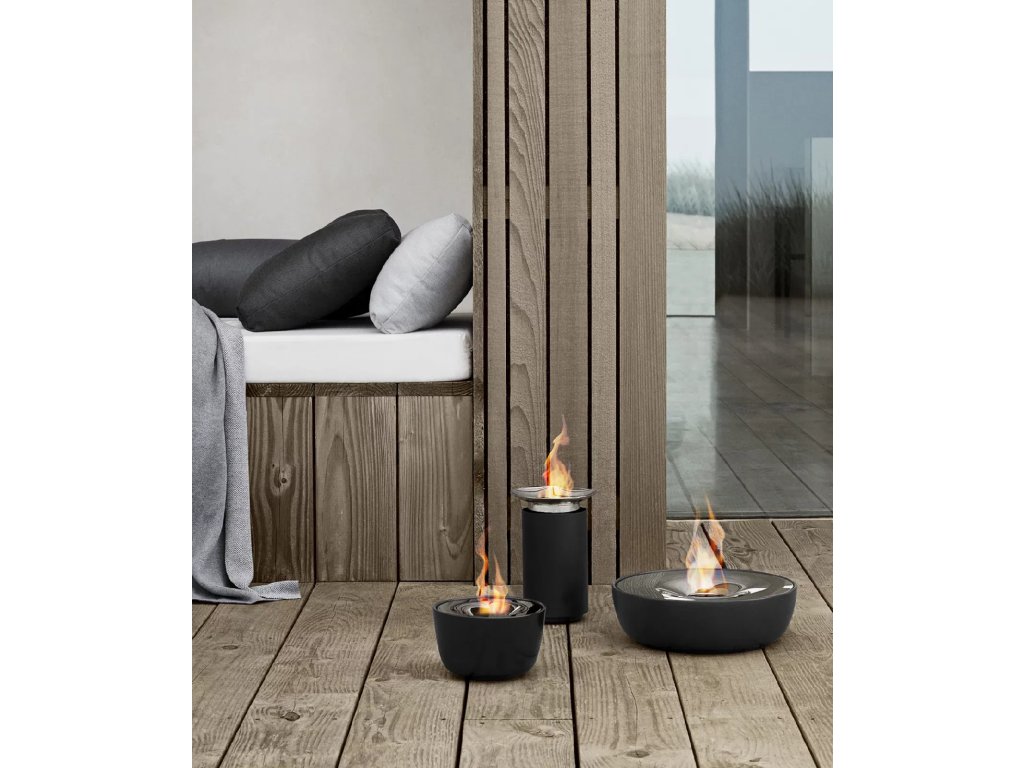 Venkovní svícen FUOCO je vyroben z mrazuvzdorné keramiky a leštěné nerezové oceli. Elegantní černá barva, chladné vzezření kovu a hřejivé plameny ohně vytvoří jedinečnou romantickou atmosféru na každé terase, zahradě i balkonu. Díky odolnosti materiálu je možné svícen používat i v zimě.