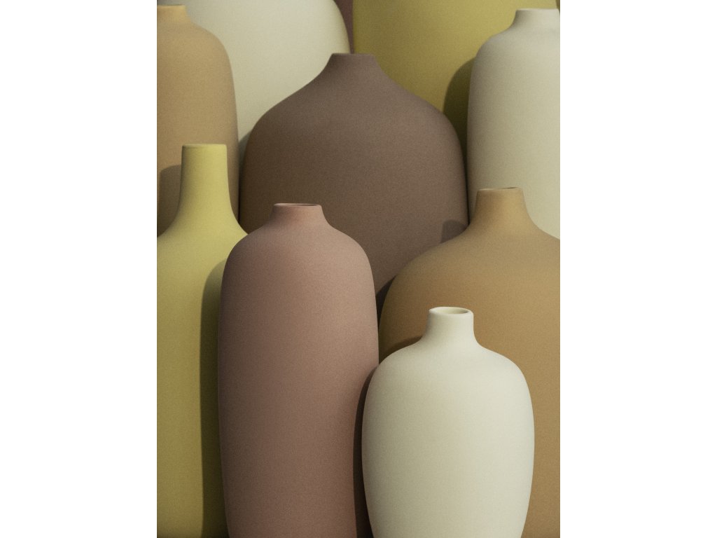 Povrchy váz jsou vyrobeny z odolné keramiky ve více barvách. Drobné nerovnosti, mírně barevné odchylky a viditelné linie jsou výsledkem výrobního procesu, který činí tyto vázy jedinečnými.