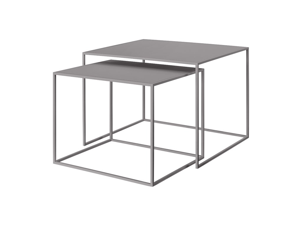 Hranaté, praktické, krásné! Souprava dvou stolků FERA ve tvaru krychle je vyrobená z odolné práškované oceli s matným, mírně zdrsněným povrchem. Stolky FERA jsou praktické i do menších bytů, můžete je jednoduše zasunout do sebe a ušetřit tak místo.