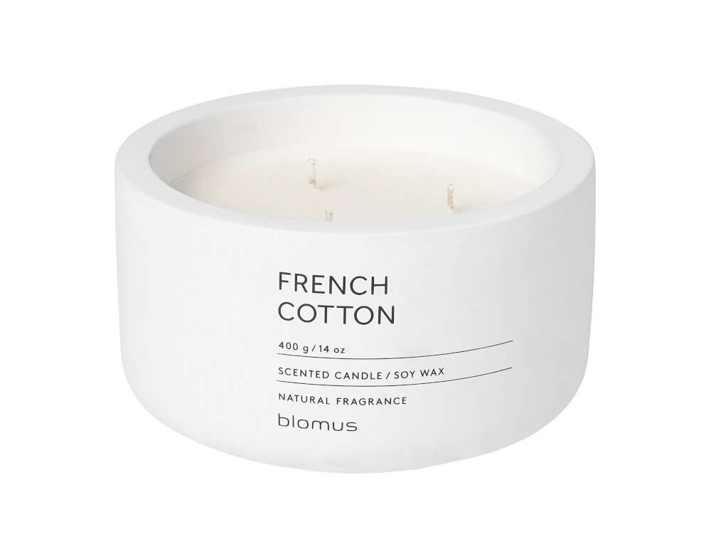 Zhluboka se nadechněte a proměňte svůj obývací pokoj v oázu pohody. Svíčka FRAGA ve světlé krémové barvě příjemně uvolňuje atmosféru svou jemnou vůní francouzské bavlny. Kombinace betonu a ruční práce dává svíčkám FRAGA jedinečný vzhled plný přirozených výrobních stop v podobě šmouh. Díky použití přírodního sójového vosku je svíčka bez toxinů, šetrná k životnímu prostředí a prakticky neprodukuje saze.