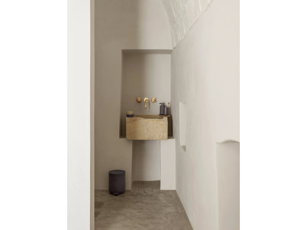 Koupelnová série KUA od švédského designéra Antona Björsinga je vyrobena z recyklovaného polyresinu. Polyresin se vyrábí z mletého kamene a plastu a vyznačuje se vysokou odolností a robustností. V souladu s tím zvolil designér tvar připomínající architekturu sloupu, aby spojil robustní materiál s jeho jednoduchostí a pevností.