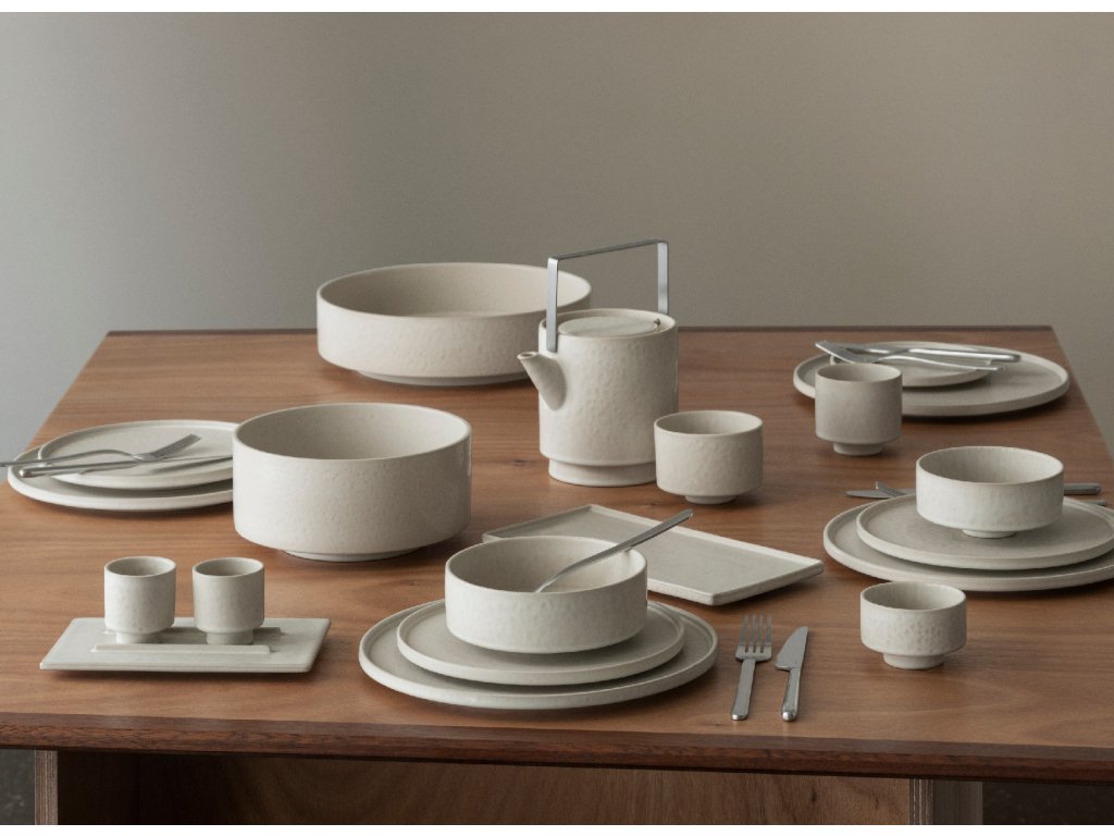 MAKOTO - minimalistická kolekce keramického servírovacího nádobí skandinávského vzhledu designérky Carsten Gollnick nabízí designové talíře, misky, džbánky, hrnky ve dvou barevných provedeních.
