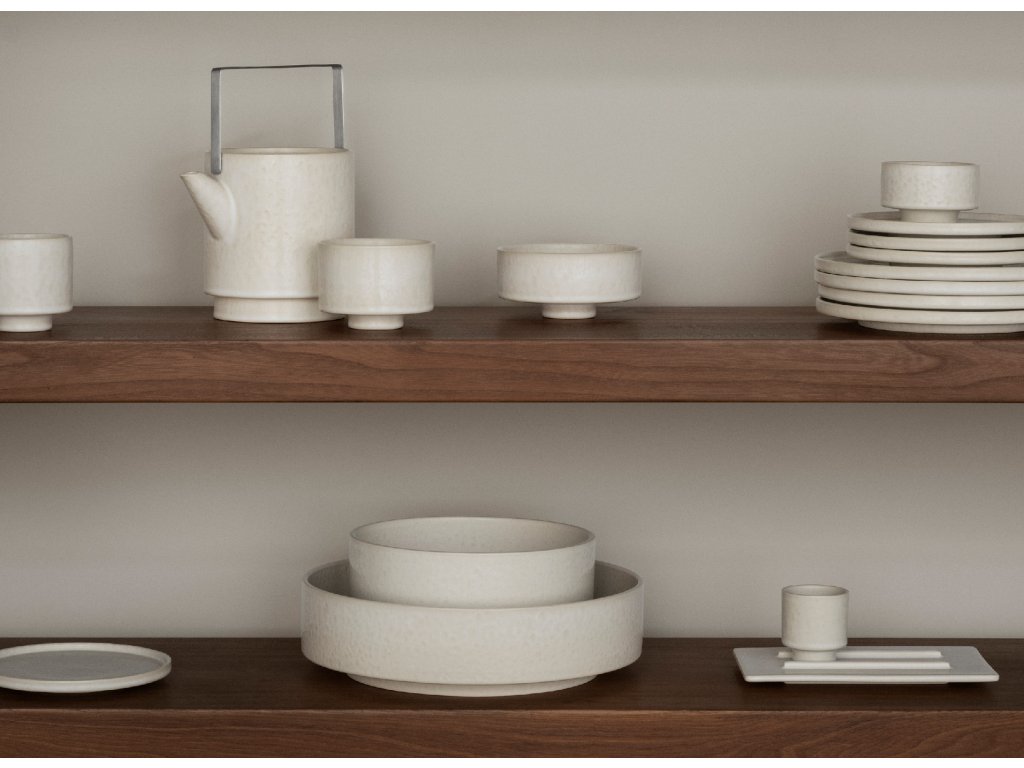 MAKOTO - minimalistická kolekce keramického servírovacího nádobí skandinávského vzhledu designérky Carsten Gollnick nabízí designové talíře, misky, džbánky, hrnky ve dvou barevných provedeních.