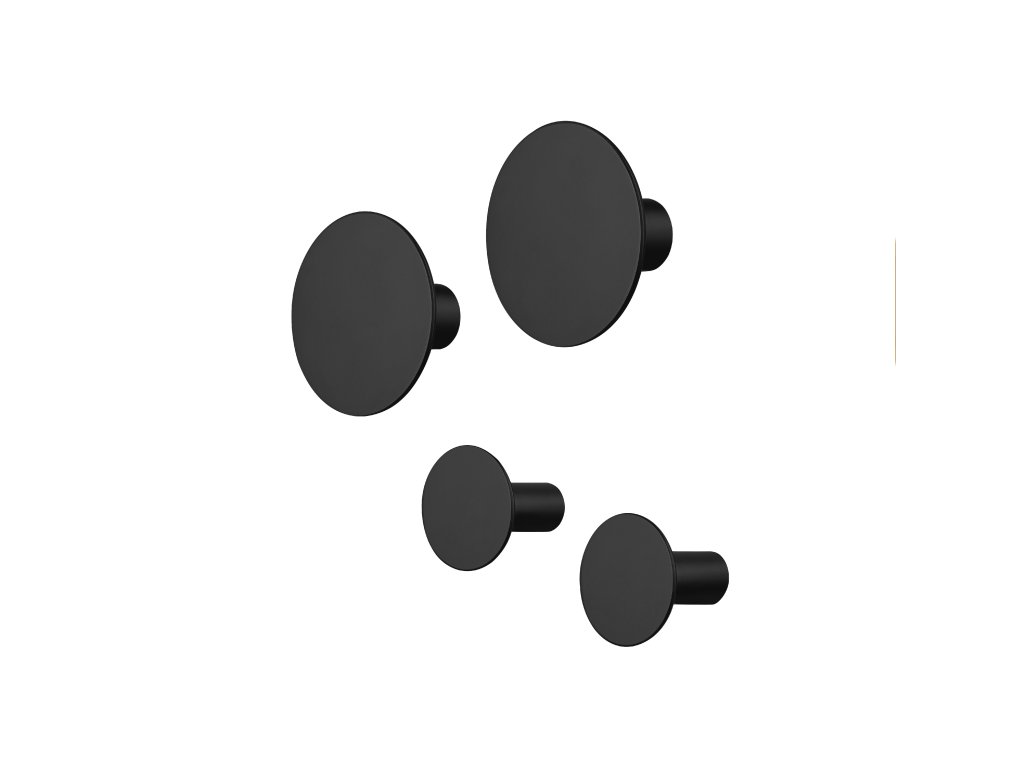 Funkční ozdoba stěny: Nástěnné háčky PONTO se dodávají v sadě čtyř ve dvou různých velikostech (2 x průměr 8,5 cm, 2 x průměr 5 cm). Ideální doplněk pro Vaši chodbu, kuchyň nebo koupelnu - háčky PONTo dodávají vašemu interiéru jedinečný styl a lze je perfektně kombinovat.