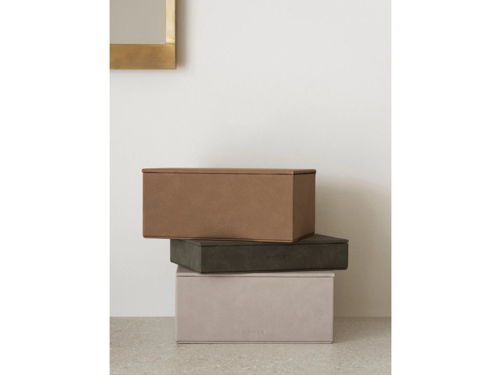 Sada boxů se skládá ze dvou boxů různých velikostí, které lze uzavřít pomocí víka. Potah z PU semiše dodává boxům elegantní vzhled a díky němu upoutají pozornost na vašem pracovním stole, policích nebo skříních.