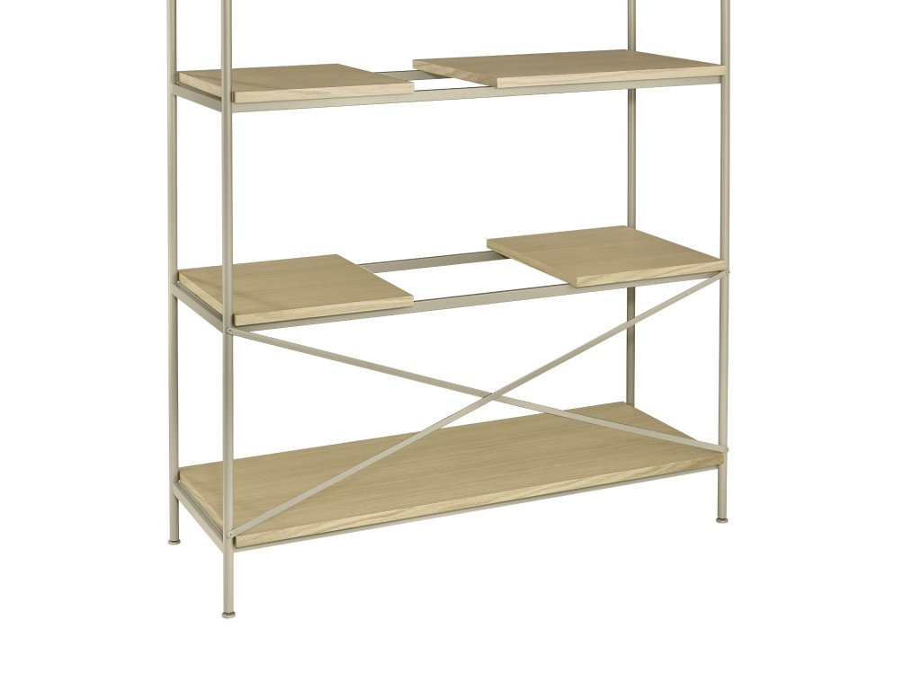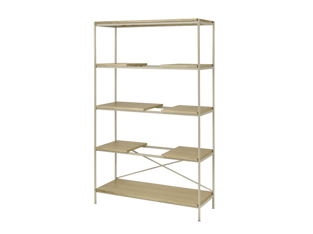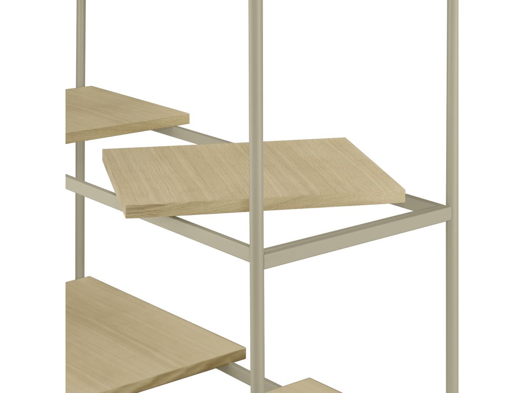 Police jsou navrženy tak, aby je bylo možné volně přesouvat na pevném vodorovném rámu police.