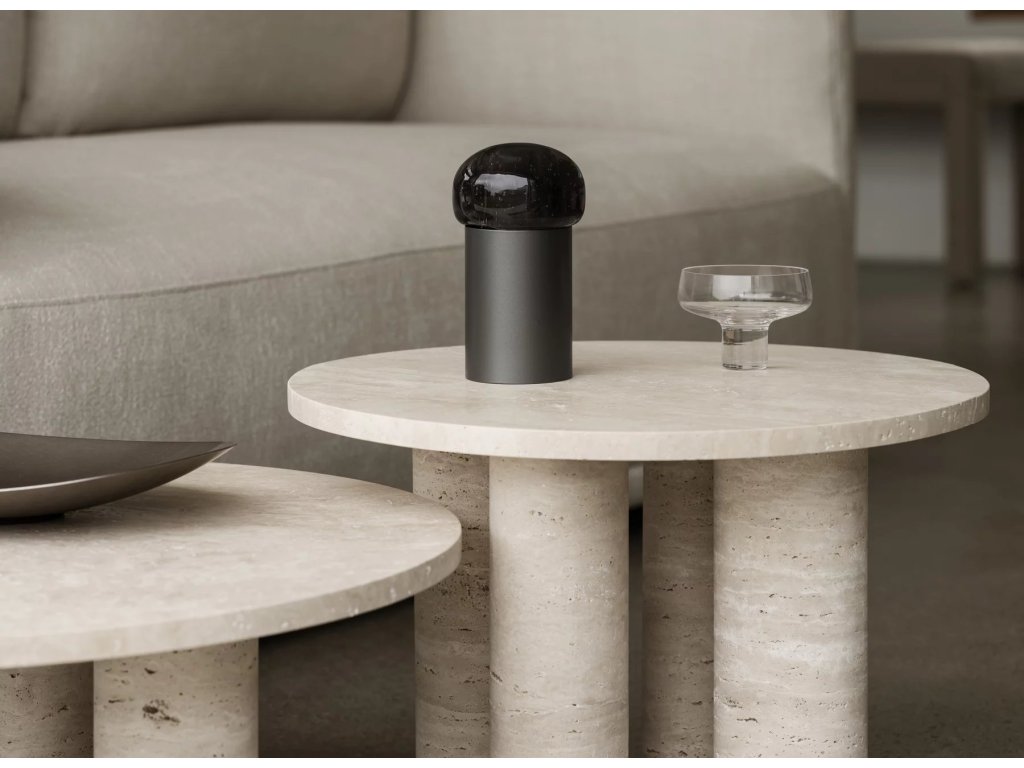VOLOS kolekce minimalistických stolků, vyrobená z travertinu - porézního vápence, navržená designérem Sebastianem Herknerem. Pro travertin jsou charakteristické otvory, póry, i barevné rozdíly, což dělá tento kámen jedinečným.